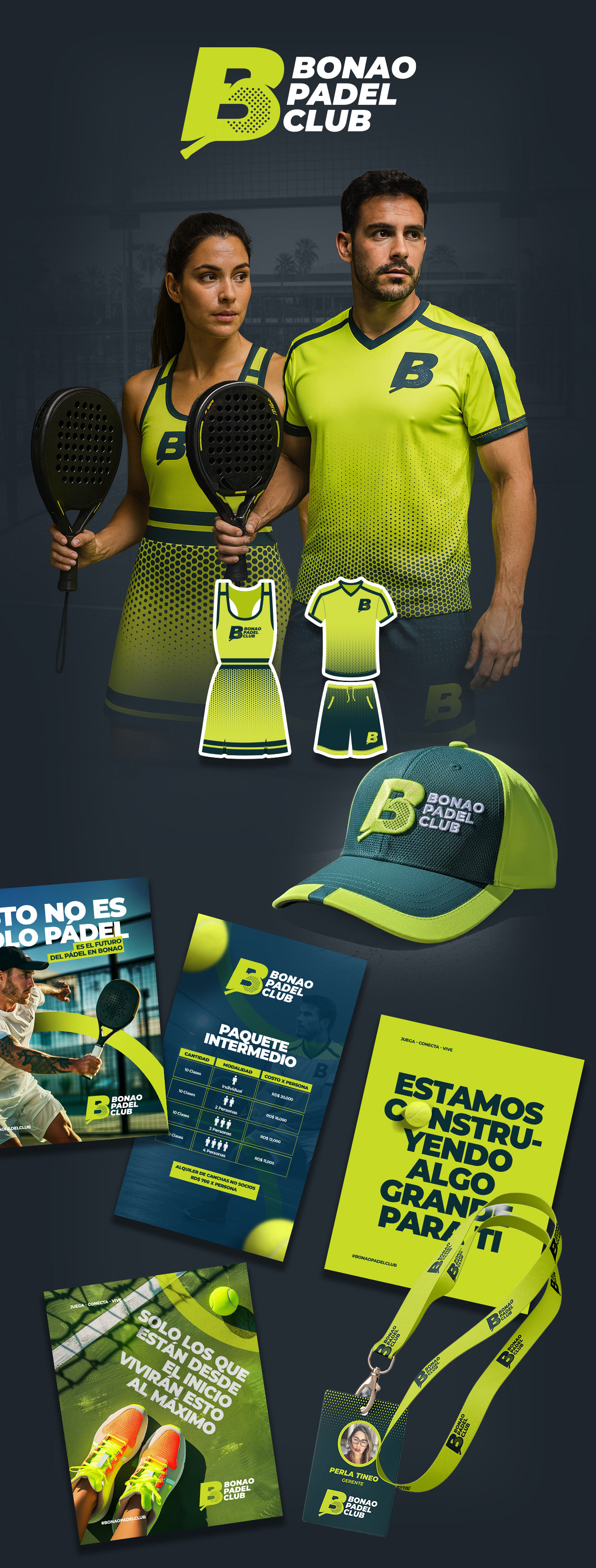 Bonao Padel Club is a visual identity project created for a new sports center dedicated to padel in Bonao, Dominican Republic. The main goal was to develop a modern, memorable, and flexible logo, along with a basic brand identity manual that establishes the visual foundations of the brand — typography, color palette, correct/incorrect usage, applications, and communication guidelines.